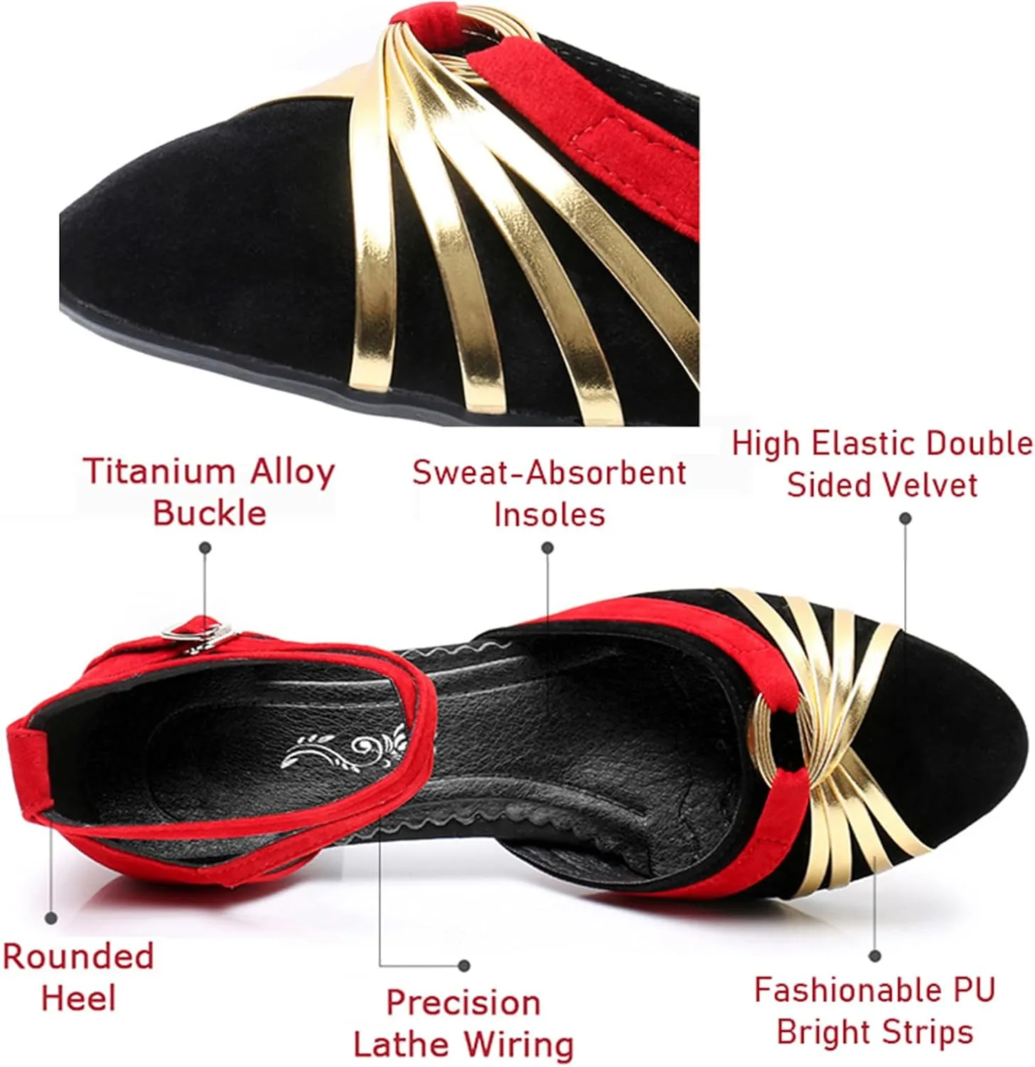 Women's Suede Latin Dance Shoes Performance Ballroom Standard Adult Two Mid-Heeled Soft Thick Sole Closed Toe Dancing Shoes